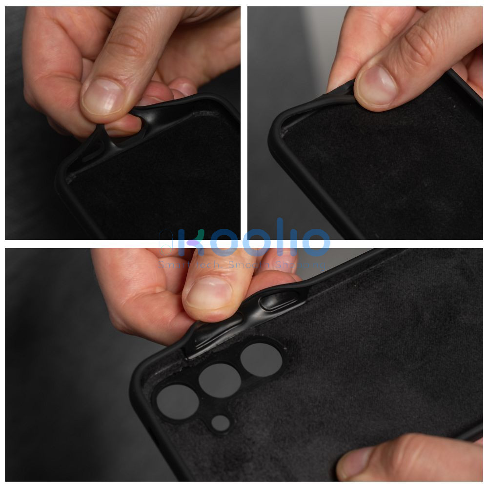 A kameralencséknek különálló kivágásaik vannak amelyek kifejezetten a lencsék jobb védelmét szolgálják így védve a karcolásoktól és ütésektől. A belső velúr borítás finoman óvja a készülék hátlapját és oldalait, így a tok egyszerre praktikus és stílusos megoldást kínál a mindennapi védelemhez.