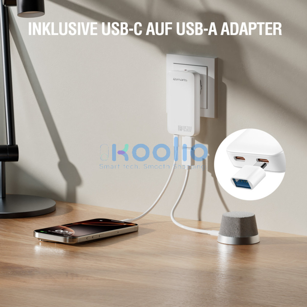 A kompakt, sokoldalú készülék minden igényhez alkalmazkodik: két nagy teljesítményű USB-C porttal és a mellékelt USB-C–USB-A adapterrel a modern eszközöket, például okostelefonokat, táblagépeket és laptopokat ugyanolyan egyszerűen töltheti, mint a régebbi, USB-A csatlakozással rendelkező eszközöket. Akár a legmodernebb, akár kissé régebbi kiegészítőket használ, a töltőprofi zökkenőmentes kompatibilitást és megbízható töltést biztosít, amikor és ahol szüksége van rá.