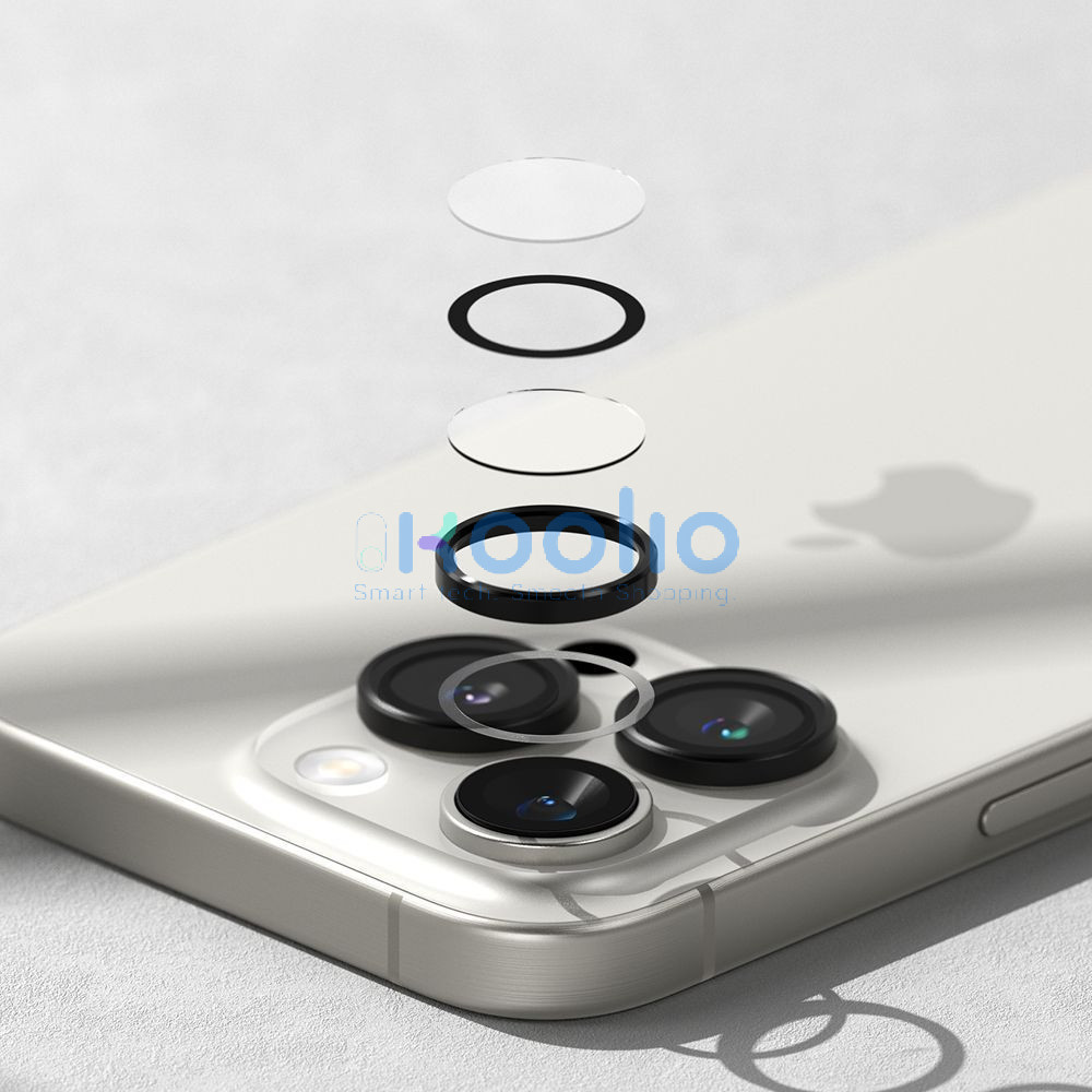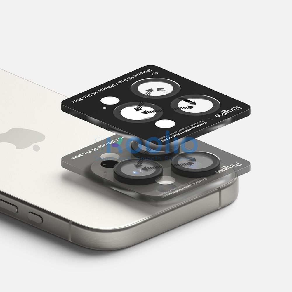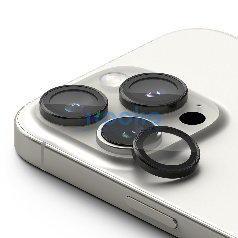 Apple iPhone 16 Pro / 16 Pro Max, Kamera lencsevédő fólia, ütésálló fólia, Tempered Glass (edzett üveg), alumínium keret, Ringke Camera Frame Protector, fekete