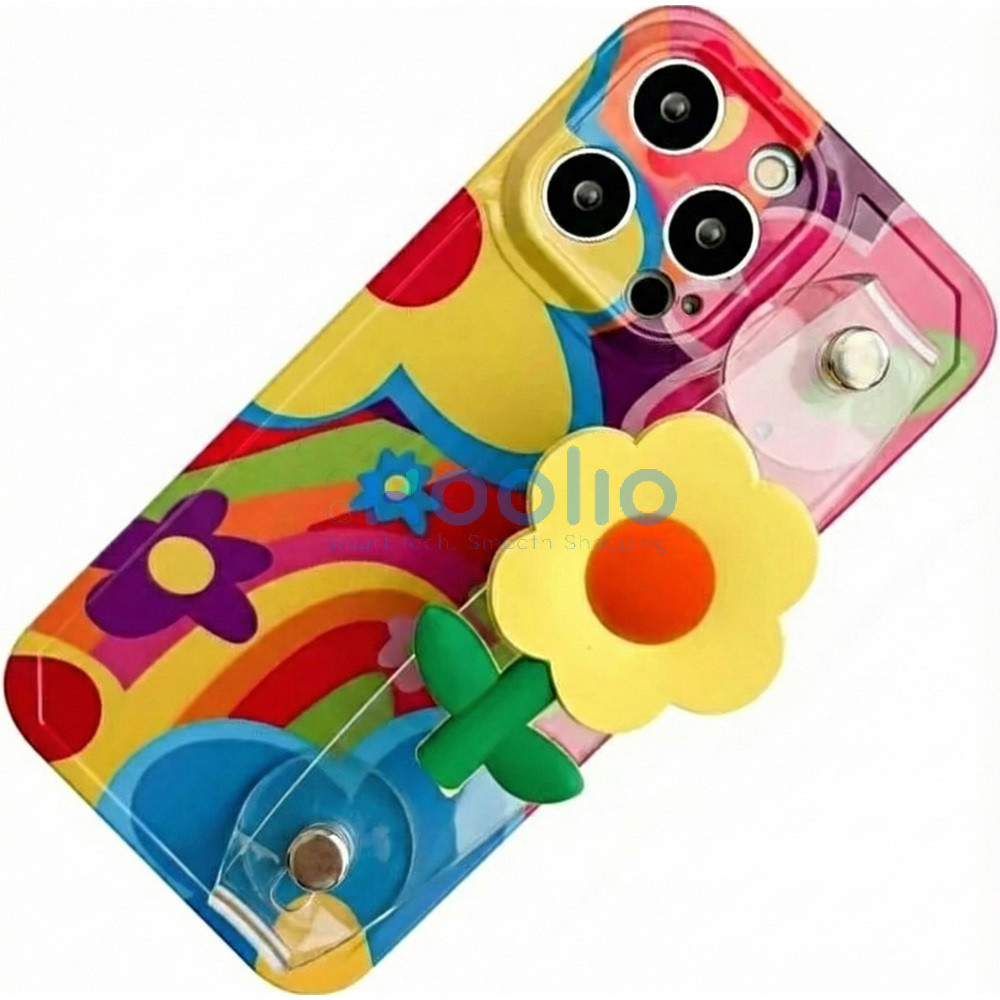 Apple iPhone 16, Szilikon tok, kézpánttal, virág minta, Flower Case, mintás