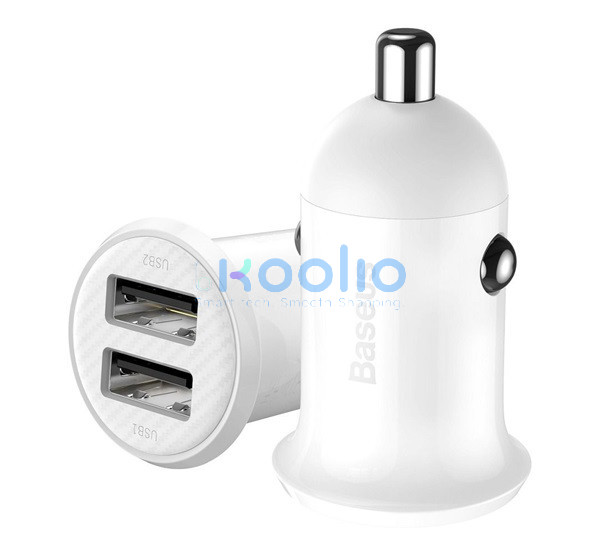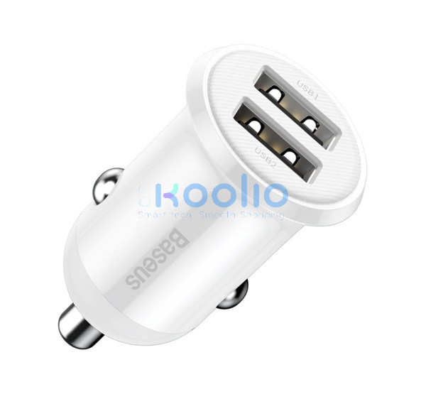 Baseus Grain Pro autós szivargyújtó gyorstöltő adapter 2xUSB, 24W, fehér