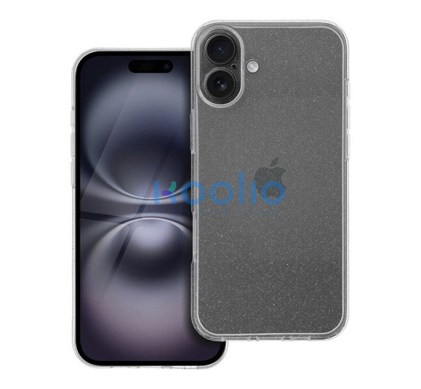 Clear 2mm iPhone 16 Plus csillámos szilikon tok, átlátszó