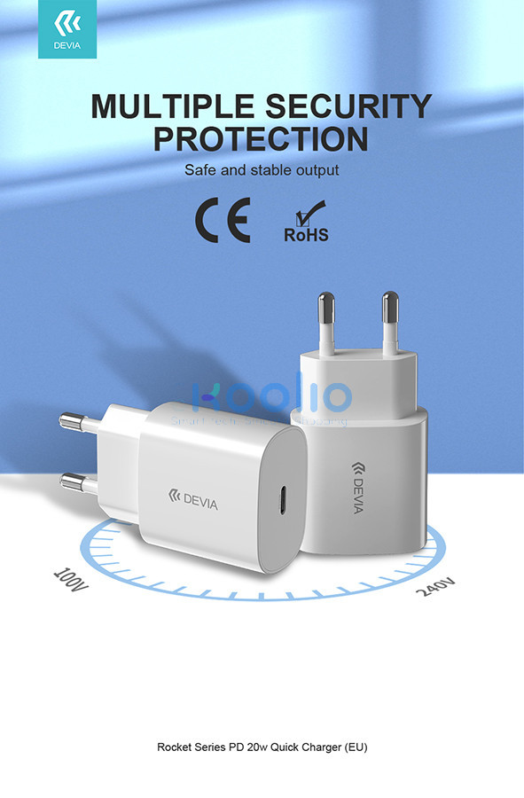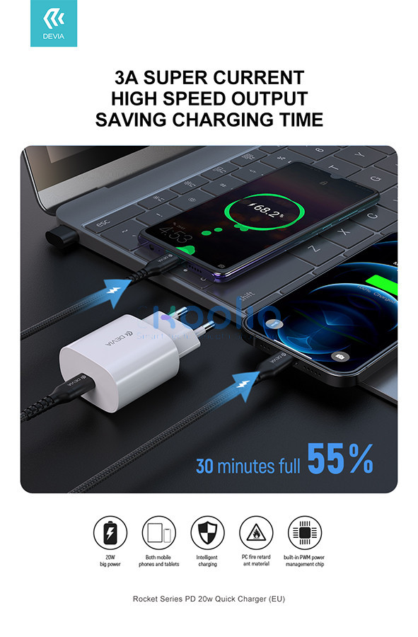 Devia Rocket Series 20W PD hálózati gyorstöltő adapter Type-C - fehér