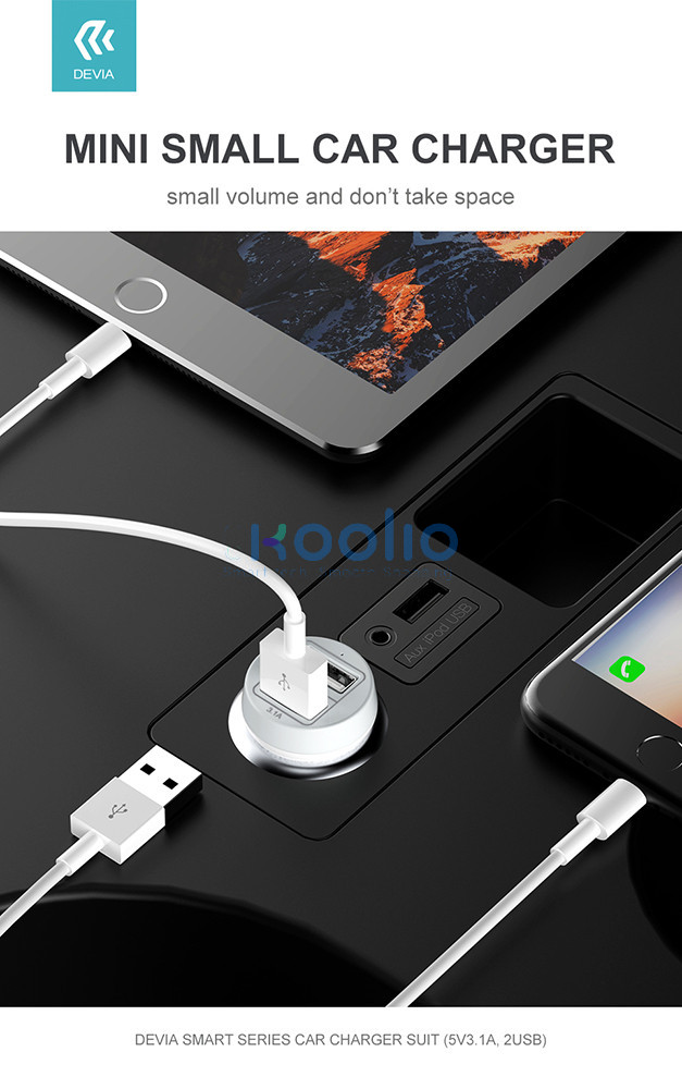 Devia Smart Series 15W 2xUSB autós töltő adapter - fehér