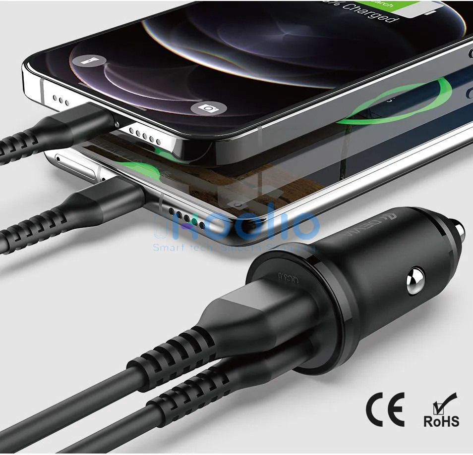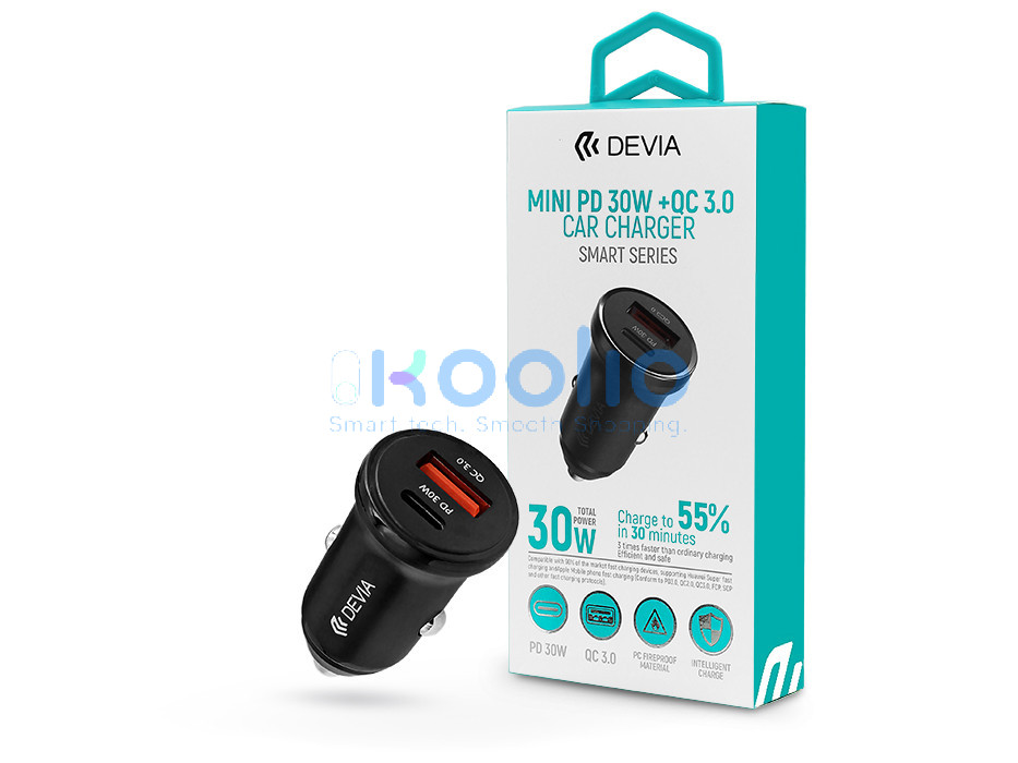Devia Smart Series 30W PD+QC autós gyorstöltő adapter USB+Type-C - fekete