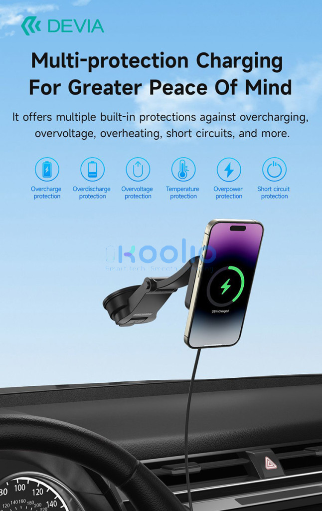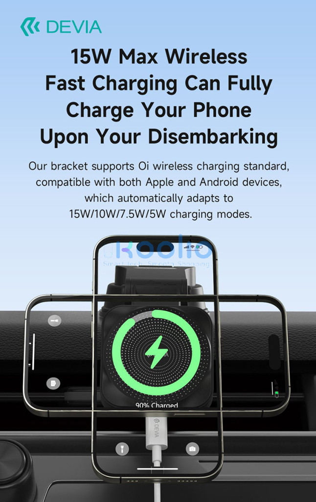- A tartó támogatja a Qi vezeték nélküli töltési szabványt, kompatibilis mind az Apple, mind az Android készülékekkel, amely automatikusan alkalmazkodik a 15W/10W/7,5W/5W töltési módokhoz