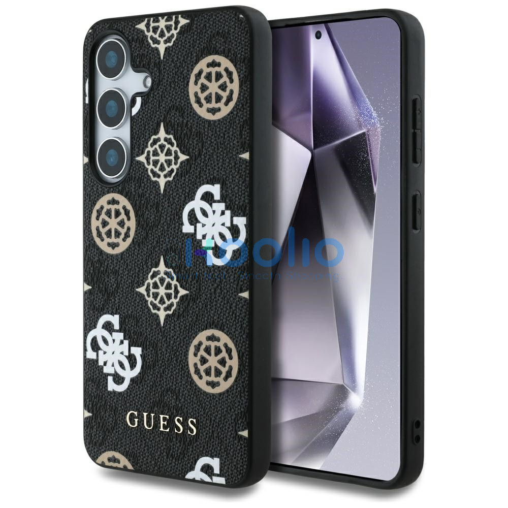 Guess 4G Printed Colored Peony Pattern Samsung Galaxy S25 MagSafe kemény hátlap tok, fekete