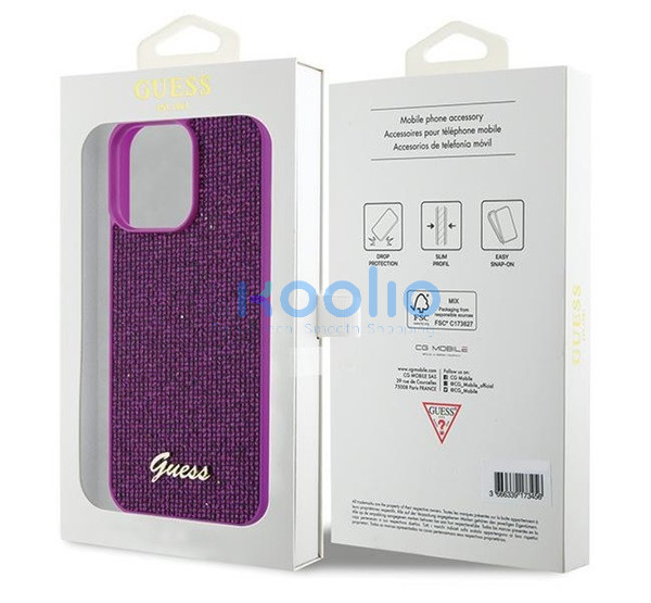 Guess Disco Metal Script Apple iPhone 15 Pro Max hátlap tok, fuksia