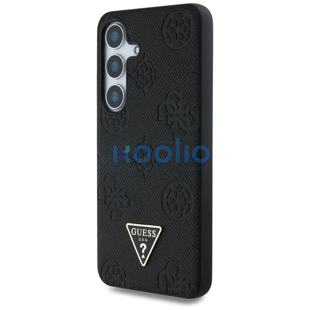 Guess Grained Hot Stamp Peony Pattern Triangle Logo Samsung Galaxy S25 MagSafe kemény hátlap tok, fekete