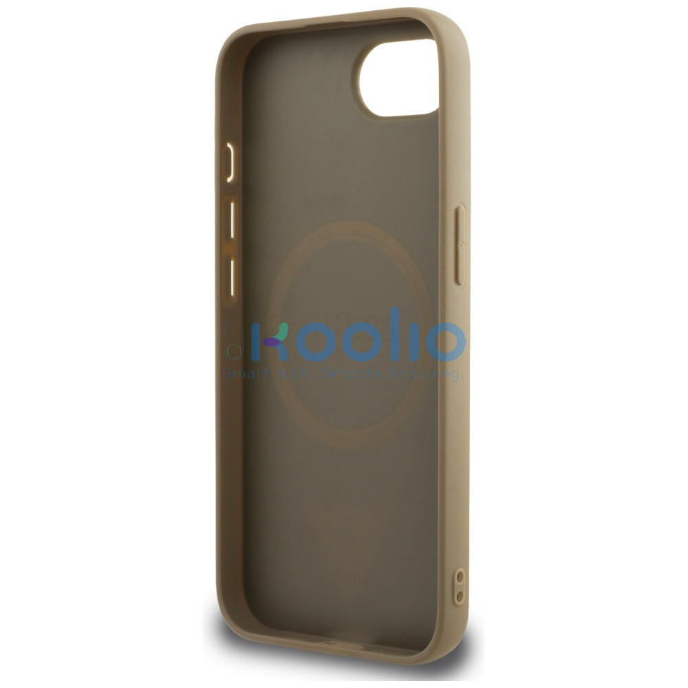 Guess Grained Triangle Apple iPhone 17e / iPhone 16e MagSafe tok, világosbarna