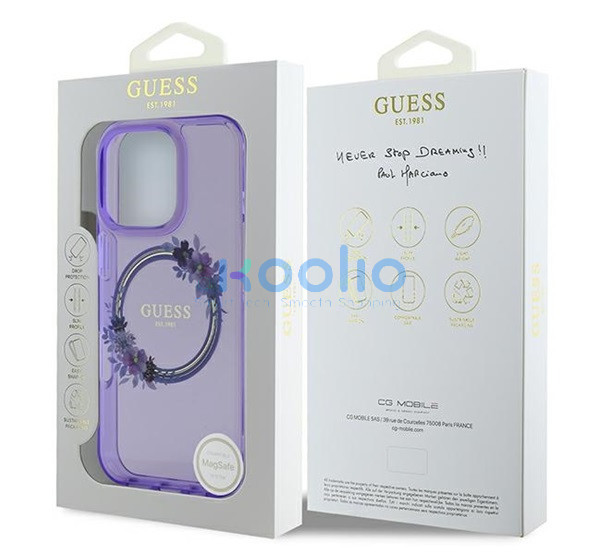 A legmagasabb minőségű anyag rendkívül ellenálló a sérülésekkel és karcolásokkal szemben, így hosszú ideig megőrzi kifogástalan megjelenését. A tok hátoldalán középen elhelyezett nagyméretű Guess-logó kiemeli a kollekció exkluzivitását, gyönyörű díszítésként szolgál, és egyben megerősíti a tok kiváló minőségét és eredetiségét.