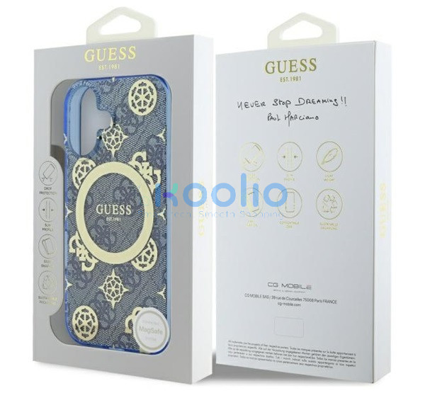 Ez az egyedi tok elegáns aranyszínű részletekkel hívja fel magára a figyelmet, köztük a márka jellegzetes emblémáival és a hozzá illő aranyszínű MagSafe gyűrűvel. A kiváló minőségű 4G nyomtatás, amely a Guess stílus ikonja, klasszikus, időtlen megjelenést kölcsönöz a toknak. Emellett a Guess logó finoman a mágneses gyűrű belsejében kapott helyet, tökéletesen kiegészítve az általános dizájnt.