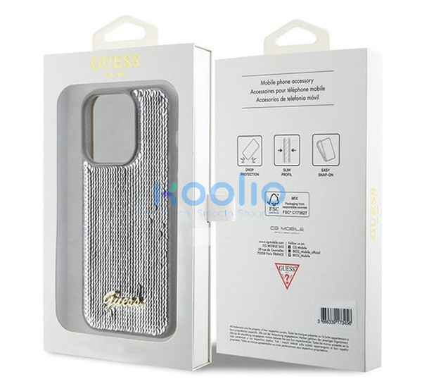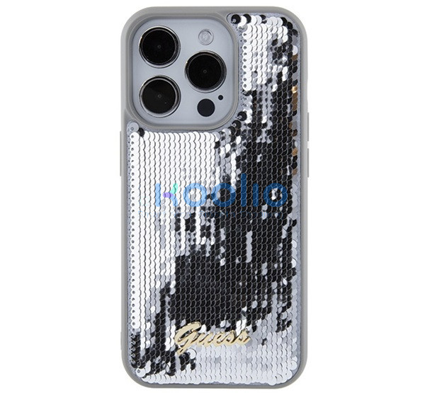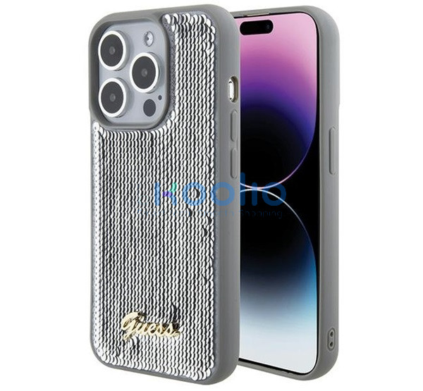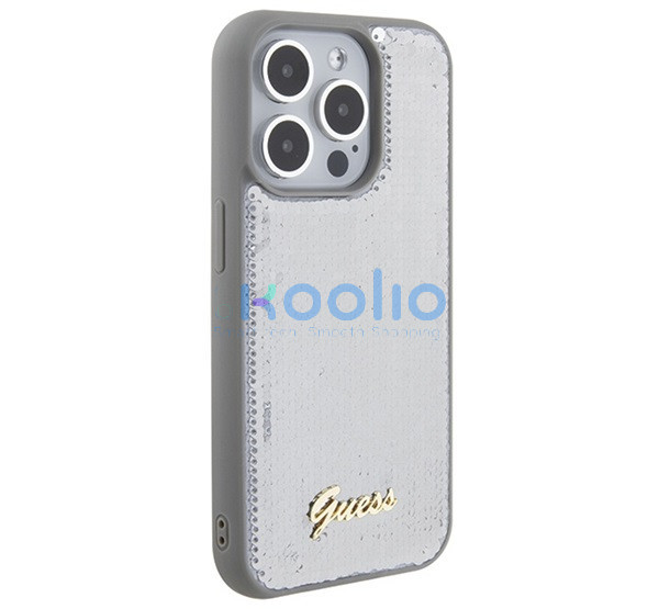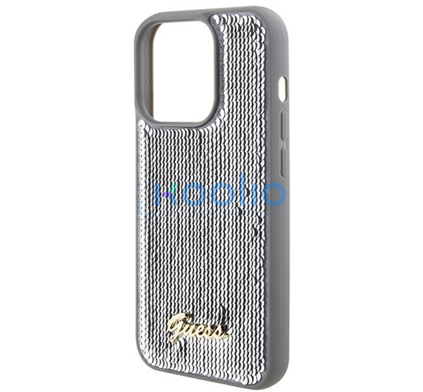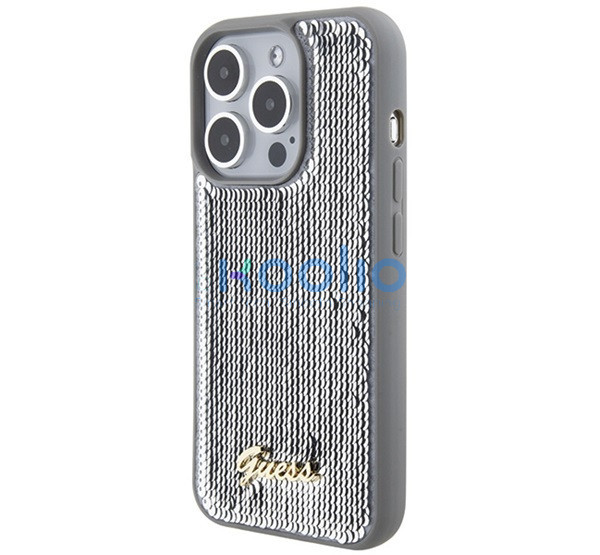 Guess Sequin Script Metal Apple iPhone 15 Pro Max hátlap tok, ezüst