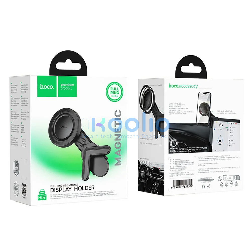 - A Hoco H57 Display Show Ring egy mágneses autós tartót okostelefonok biztonságos és kényelmes rögzítésére terveztek vezetés közben.
