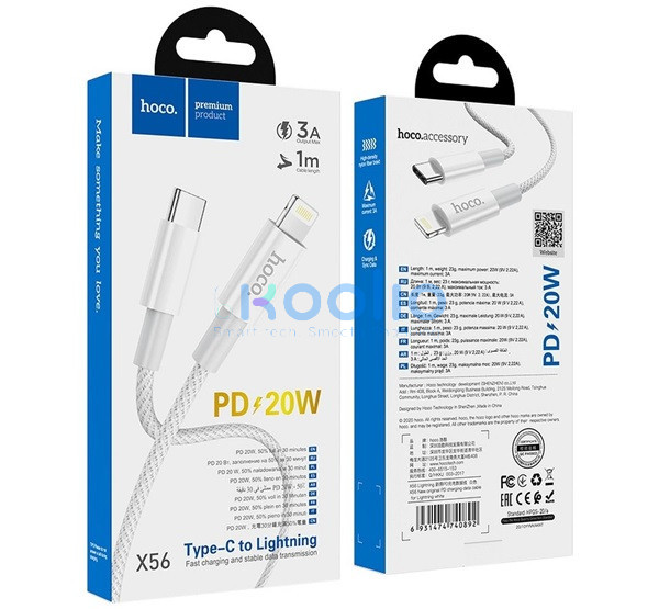 A Hoco X56 Type-C / Lightning töltő- és adatkábel egy 20W teljesítményű kábel, amely támogatja a Power Delivery (PD) gyorstöltést. A kábel 1 méter hosszú, és 3A áramerősséget biztosít, ami gyors töltést tesz lehetővé kompatibilis eszközök, például iPhone-ok számára. Anyaga szövet borítású, így különösen tartós és ellenáll a sérüléseknek. Ideális választás azok számára, akik gyors és megbízható kábelt keresnek a Type-C csatlakozóval ellátott töltők és Lightning porttal rendelkező eszközök közötti kapcsolat létrehozásához?