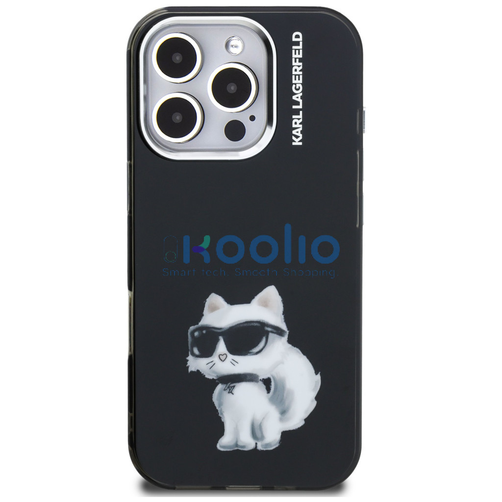 Karl Lagerfeld IML Aquarelle Choupette iPhone 16 Pro hátlap tok, fekete