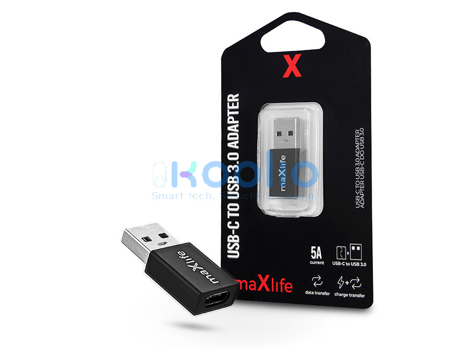 - A Maxlife márkájú adapter egy USB-C-ről USB 3.0-ra történő adapter, amely lehetővé teszi a töltést és az adatátvitelt.