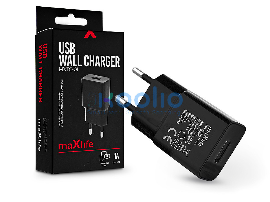 Maxlife MXTC-01 5W USB hálózati töltő adapter - fekete