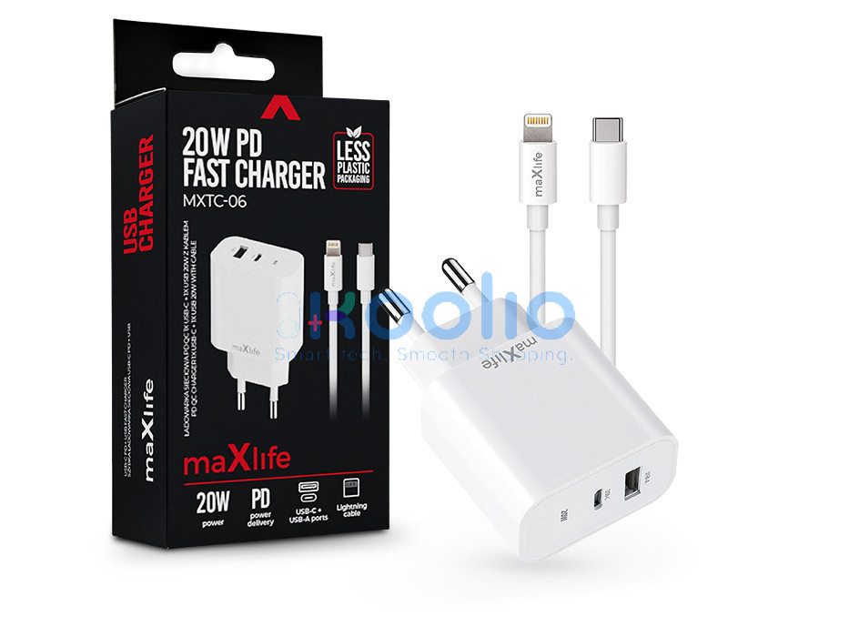 - Az MXTC-06 fali töltő ideális megoldás azok számára, akik gyors és hatékony töltést várnak el készülékeik számára. Ez a töltő 20 W-os kimeneti teljesítményével egyszerre két készülék gyors energiafeltöltését biztosítja. Két porttal rendelkezik: USB-C és USB.