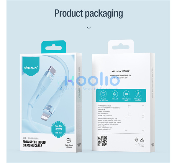 Nillkin Flowspeed USB-C / Lightning szilikon kábel, 27W, 1,2m, kék