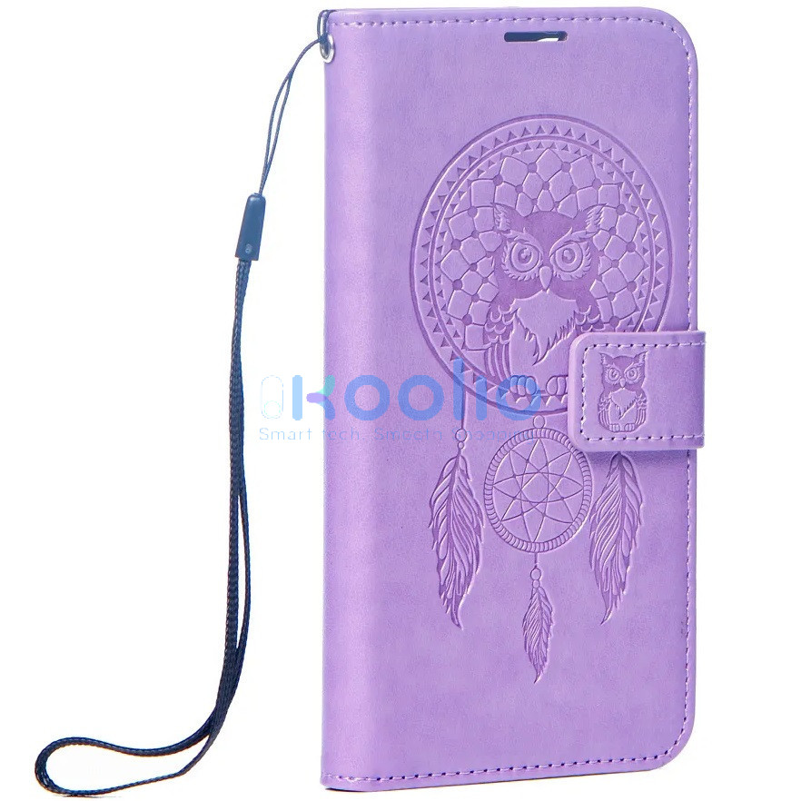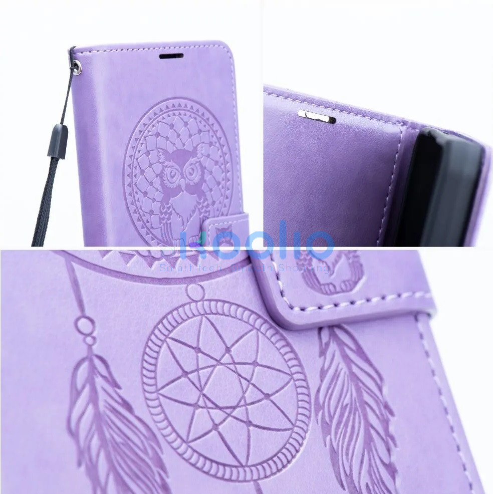 Samsung Galaxy A16 4G / A16 5G SM-A165F / A166B, Oldalra nyíló tok, kártyatartóval, kézpánttal, Álomfogó minta, Mezzo Book, mintás/lila