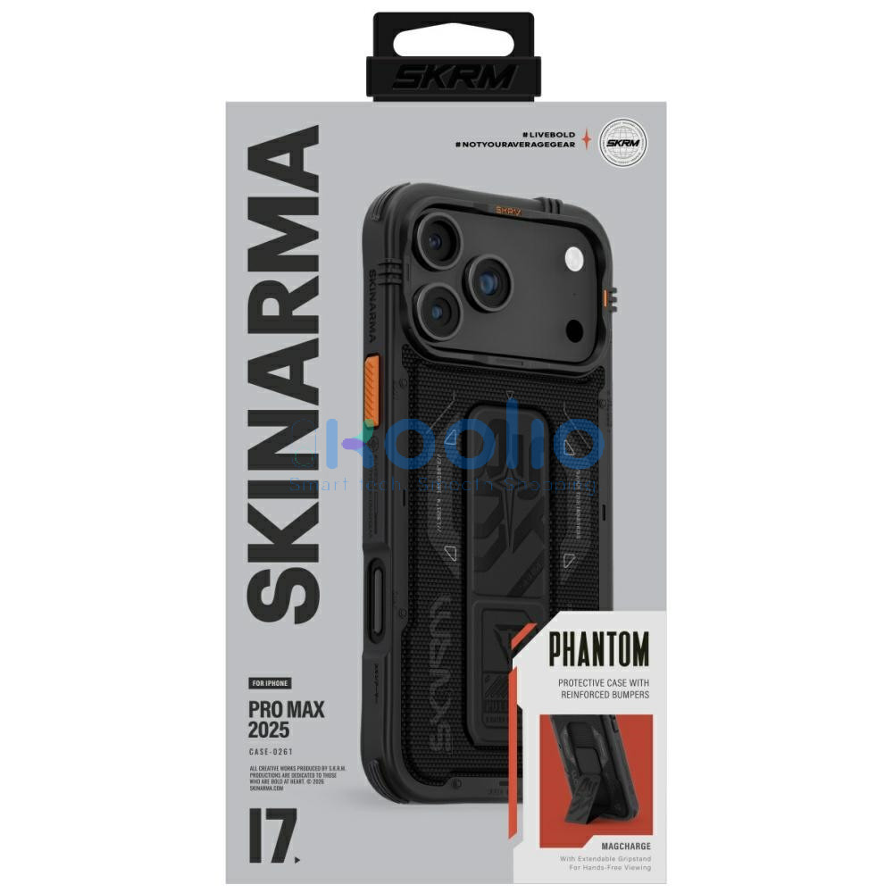 Skinarma Phantom Apple iPhone 17 Pro Max mágneses tok kitámasztóval, Magsafe kompatibilis, fekete
