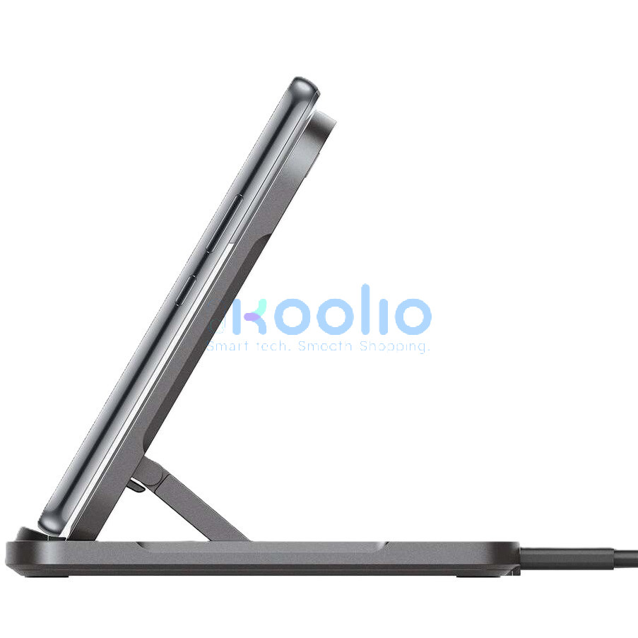 Ez a Spigen ArcField Stand Flex egy exkluzív és funkcionális induktív töltő, amelyet kifejezetten a Samsung készülékek felhasználói számára terveztek. A tanúsított eszköz a Samsung Super Fast Wireless Charging technológiájával gazdagodott, amely lehetővé teszi az adott gyártó készülékeinek gyors töltését.
