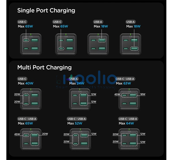 Spigen PowerArc PD2101 hálózati töltő állomás, 2xUSB-C + 2xUSB-A, 65W, EU-s + angol tápkábellel, fekete
