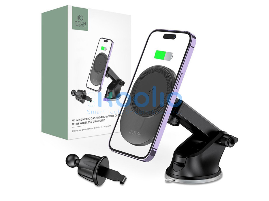 - Tech-Protect MM15W-V1 egy kényelmes autós tartó és egy szupergyors vezeték nélküli töltő kombinációja, amely támogatja a MagSafe technológiát