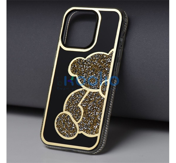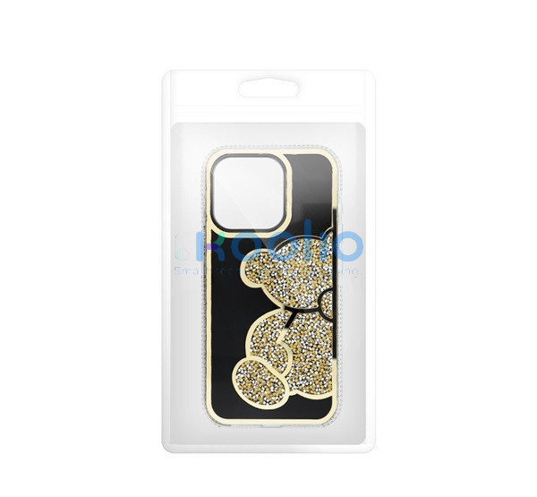 Teddy Bear iPhone 15 csillogó köves tok, arany