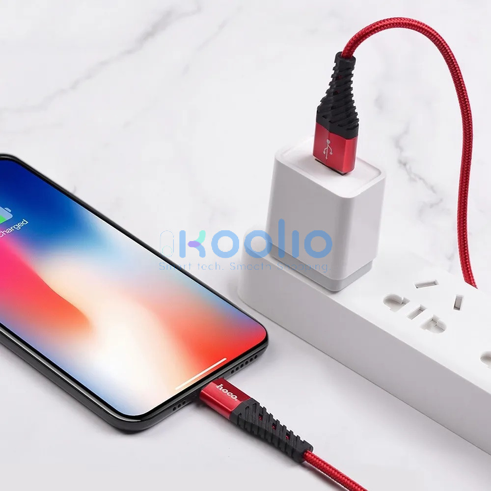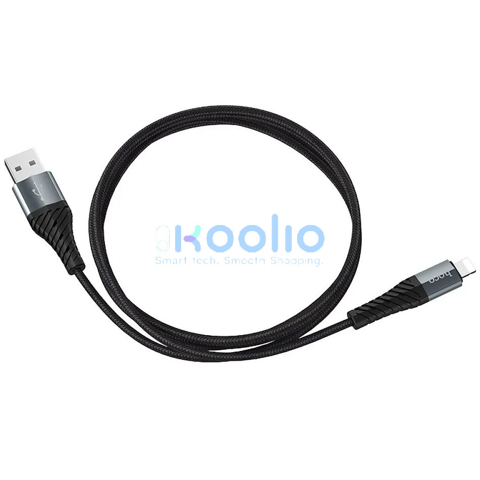 USB töltő- és adatkábel, Lightning, 100 cm, 2400 mA, törésgátlóval, gyorstöltés, QC, cipőfűző minta, Hoco X38 Cool, fekete