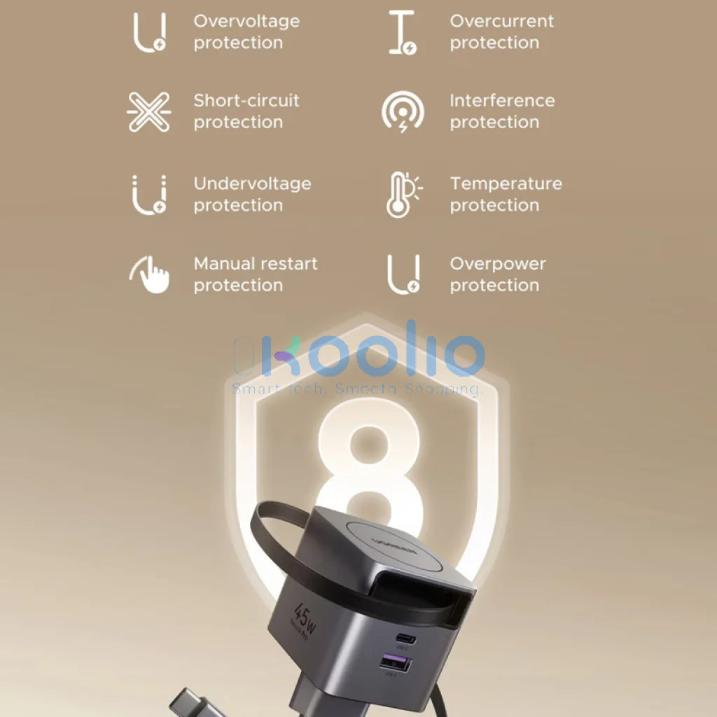 Ugreen USB-C + USB-A hálózati töltő adapter USB-C kábellel, GaN, 45W, 3A