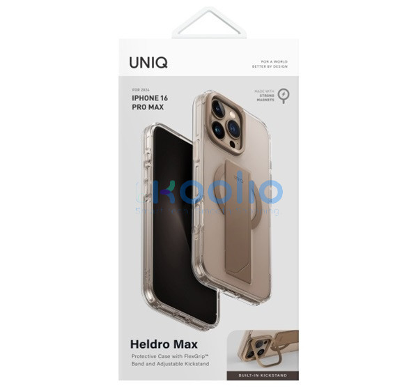 Uniq Heldro Max iPhone 16 Pro Max MagSafe tok kitámasztóval, arany