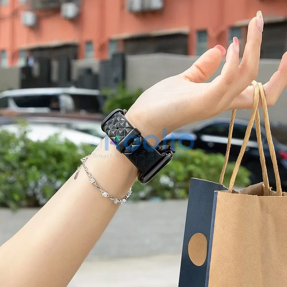 Apple Watch 1-6, SE (42 / 44 mm) / Watch 7-8 (45 mm) / Watch Ultra (49 mm), bőr pótszíj, gyémánt minta, Hoco WA18, rózsaszín