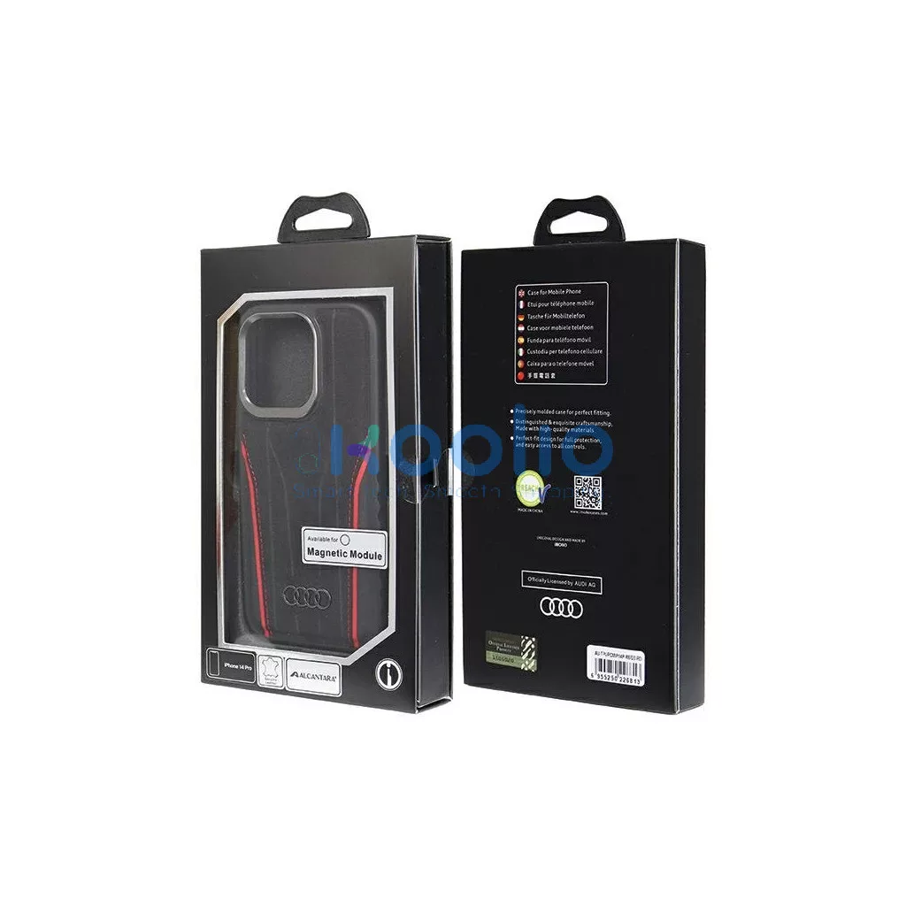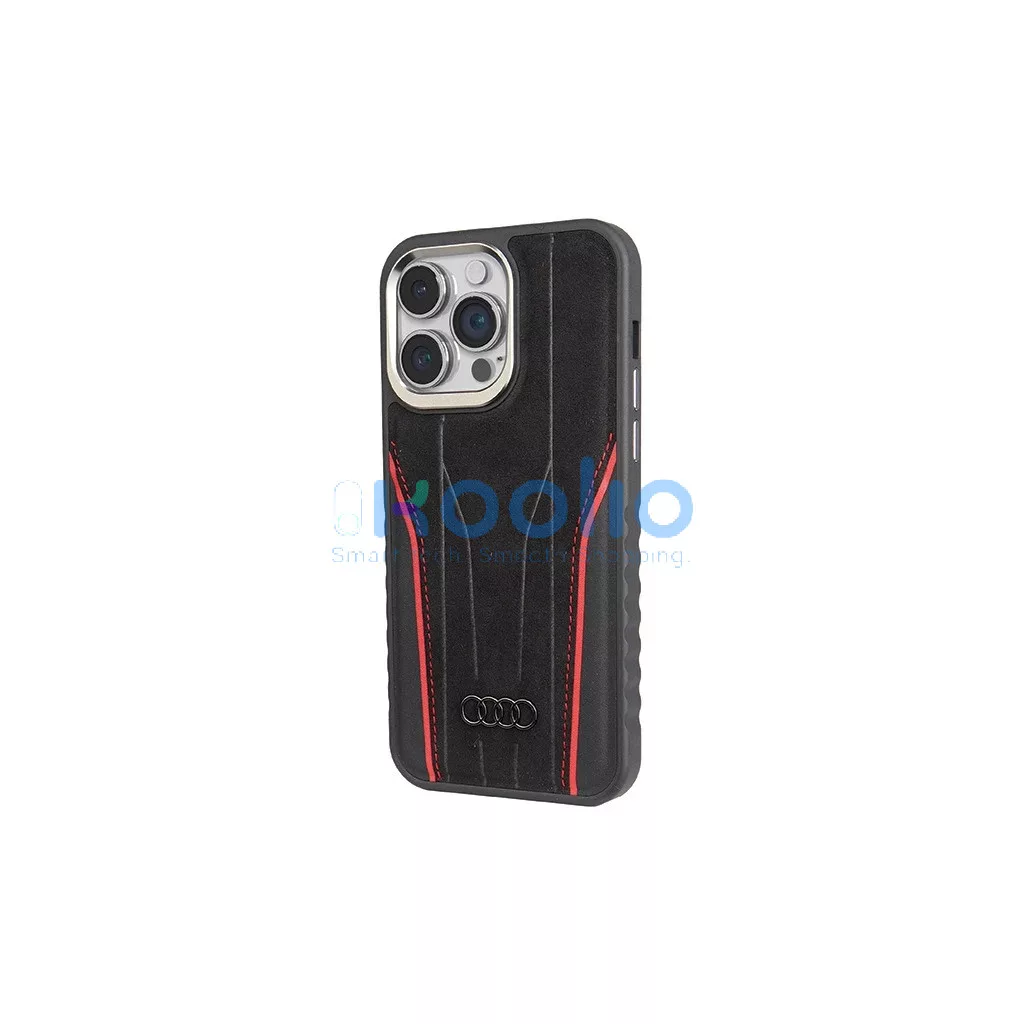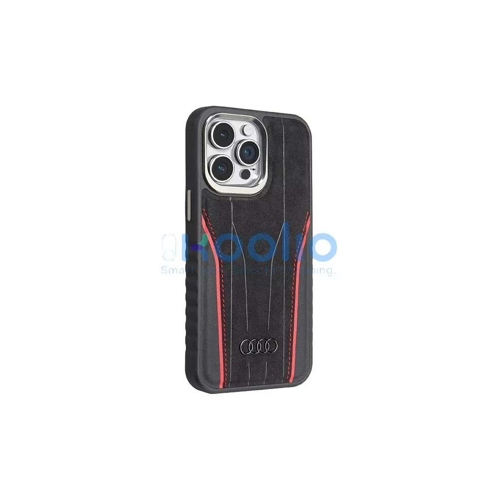 Audi valódi bőr MagSafe iPhone 14 Pro 6.1" készülékhez kemény tok fekete-piros AU-TPUPCMIP14P-R8/