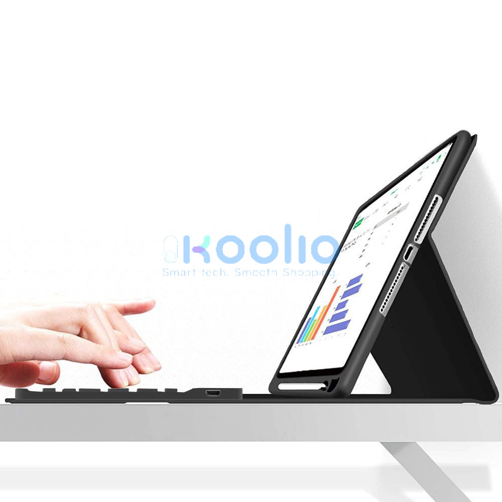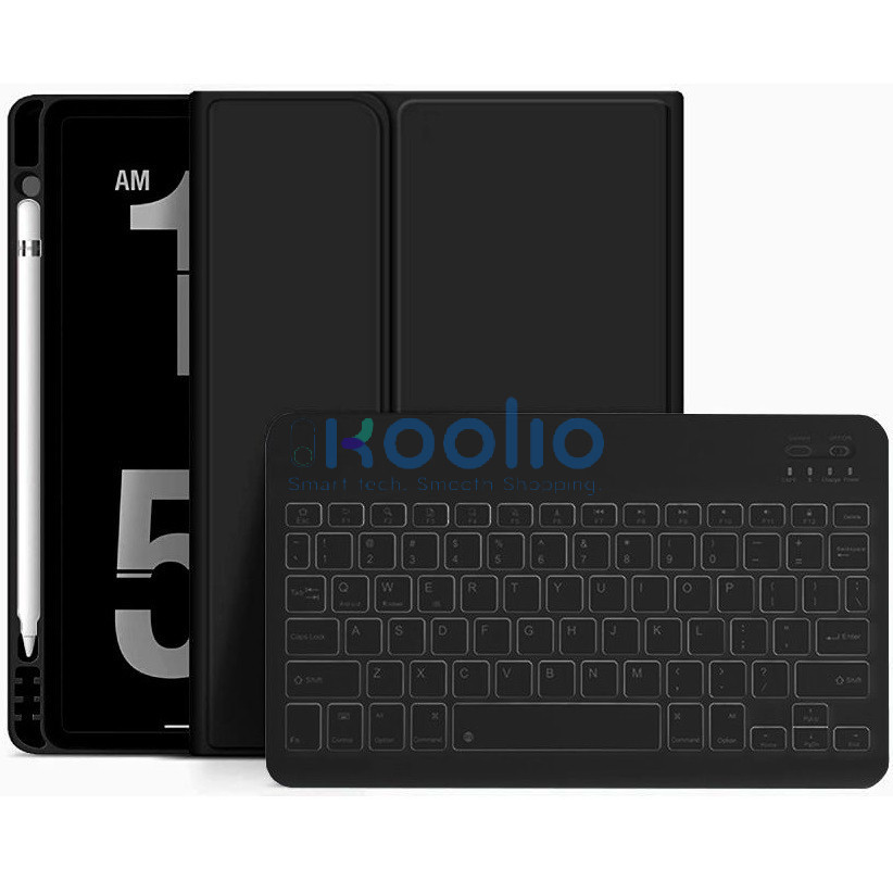 Apple iPad 10.9 (2022) / iPad 11 (2025), Bluetooth billentyűzetes mappa tok, érintőceruza tartó, érintőceruza nélkül, TP SC Pen Holder + Keyboard, fekete
