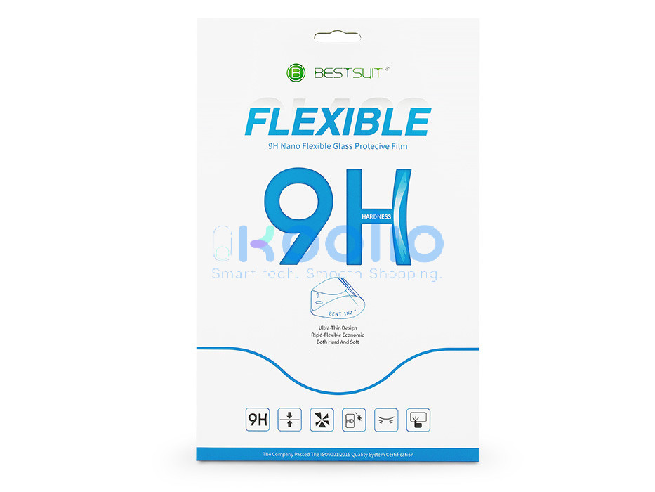 - Rugalmas hibrid üveg a Bestsuit-tól ultravékony kialakítással. Mivel az üveg nem fedi a teljes képernyőt, rendkívül könnyen felszerelhető még az átlagos felhasználó számára is. Modern formulájának köszönhetően jól tapad a képernyőhöz, megvédve azt a karcolásoktól. A nagyfokú átlátszóság kiváló képtisztaságot biztosít.