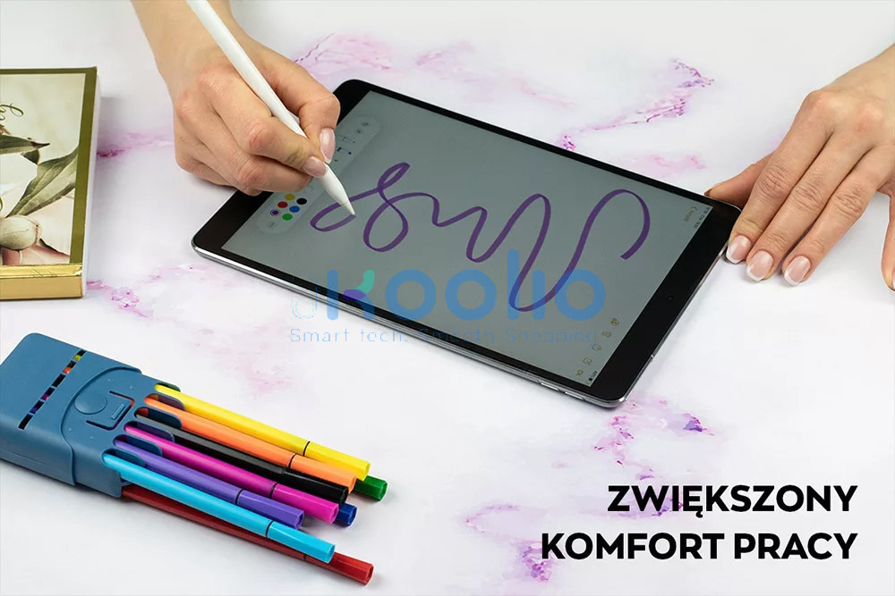 - A fólia tapintása olyan, mint a papíré, enyhén érdes felülete megakadályozza, hogy a toll elcsússzon, így növelve a mozdulatok pontosságát.