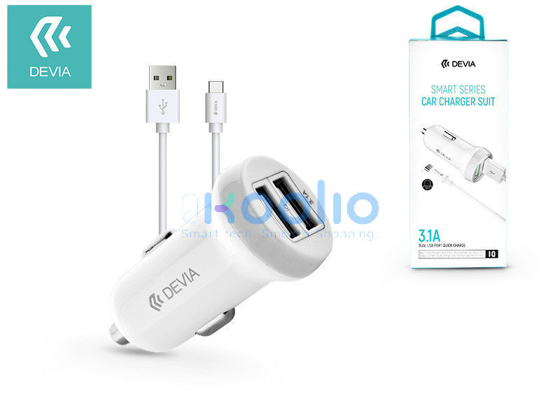 Devia Smart Series 15W 2xUSB autós töltő adapter + USB - Type-C kábel 1m - fehér