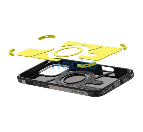 A Spigen Tough Armor Mag egy erős és strapabíró mobiltelefon tok, amely kiváló védelmet nyújt a mindennapi kopások, ütések ellen. Ez a tok a magas minőségű TPU és polikarbonát anyagok kombinációjából készül, ami biztosítja a megbízható védelmet a készülék számára. A tokba integrált mágneses gyűrű lehetővé teszi, hogy a készülék támogassa a MagSafe technológiát, amely lehetővé teszi a vezeték nélküli töltést és más MagSafe tartozékok használatát. Így a Spigen Tough Armor Mag nemcsak erős védelmet nyújt a készüléknek, hanem lehetővé teszi a MagSafe funkcionalitás teljes kihasználását is. Ergonomikus dizájnjának köszönhetően kényelmes fogást biztosít, miközben stílusos megjelenést kölcsönöz a készüléknek.