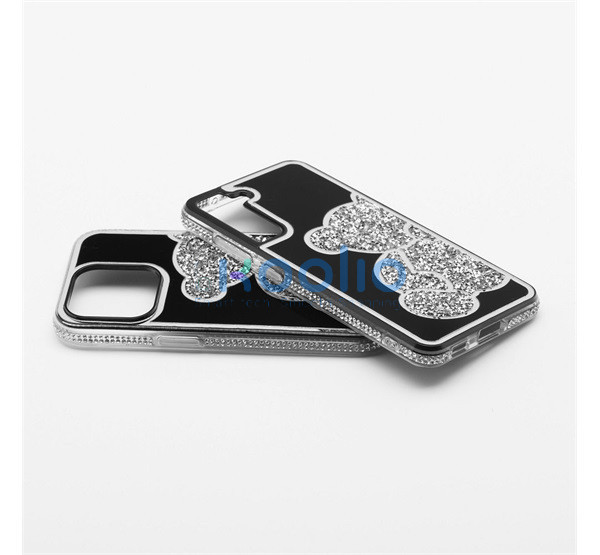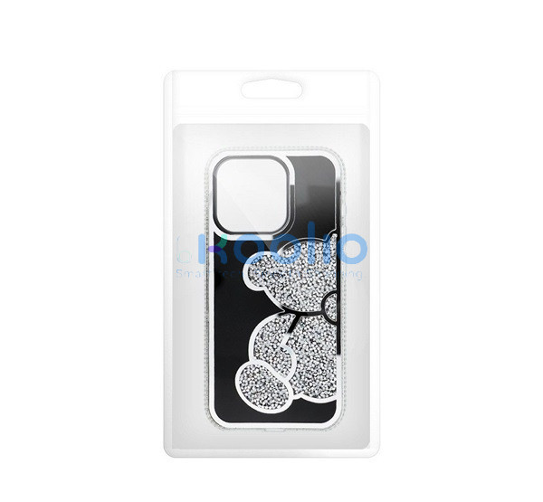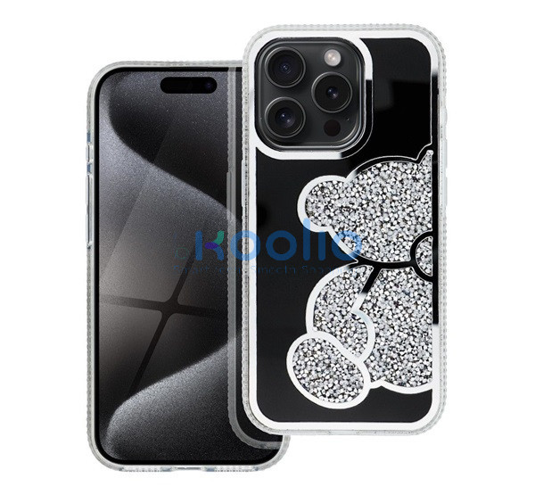 Teddy Bear iPhone 15 csillogó köves tok, ezüst