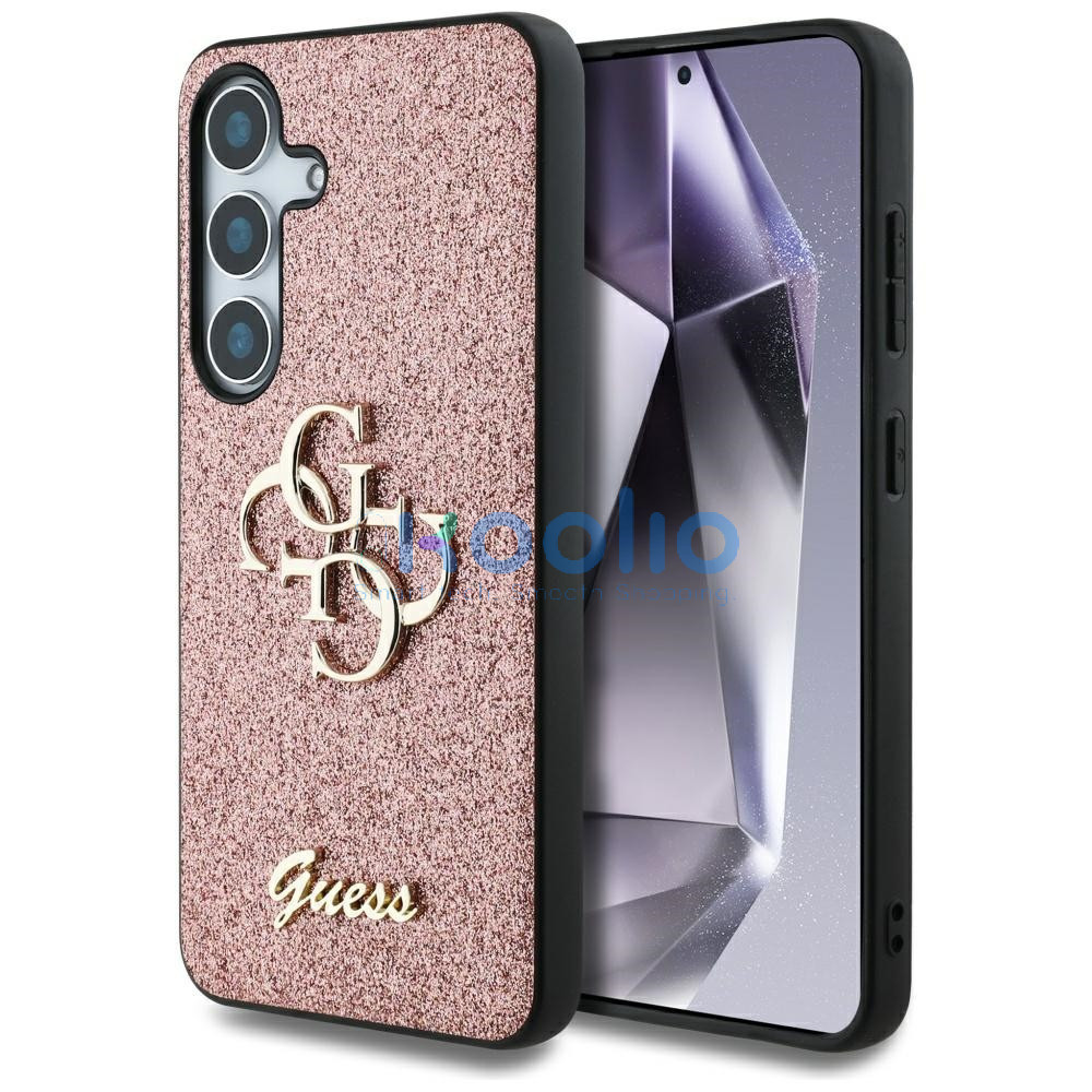 Guess Fixed Glitter Big 4G Metal Logo Samsung Galaxy S25 kemény hátlap tok, rózsaszín