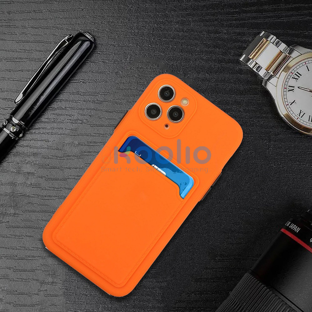 Apple iPhone 15 Pro Max, Szilikon tok, kártyatartóval, Wooze Card Slot, narancssárga