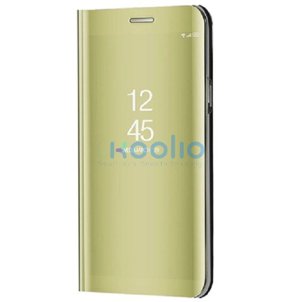 Apple iPhone 15 Plus, Oldalra nyíló tok, hívás mutatóval, Smart View Cover, arany (utángyártott)