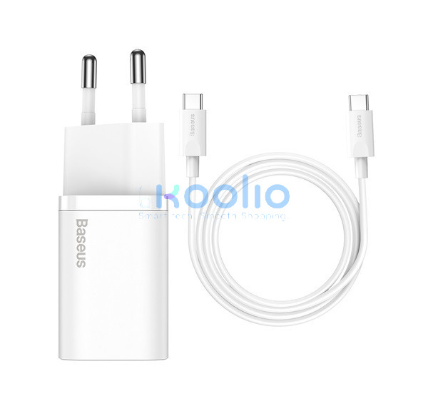 Baseus Super-Si gyorstöltő adapter USB-C / USB-C kábellel, 25W, fehér