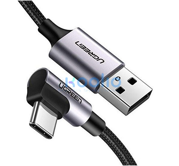 Ugreen USB-C / USB gyorstöltő derékszögű töltő- és adatkábel, 1m, fekete-szürke