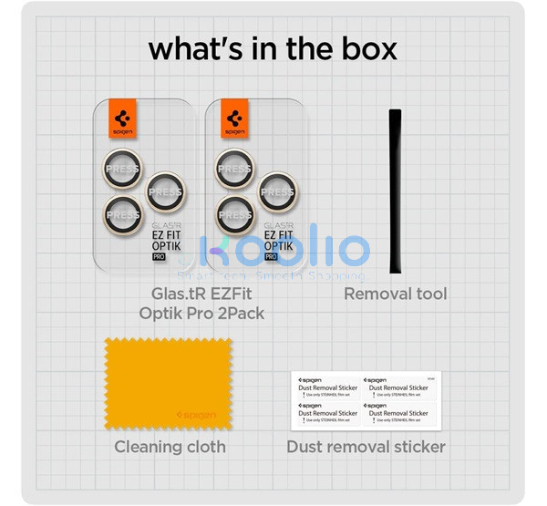 A Spigen "tR EZ Fit Optik Pro" egy edzett üvegből készült kameravédő fólia, amely kifejezetten az okostelefonok kameráinak védelmére lett tervezve. Az "EZ Fit" tálcával ellátott termék segít a pontos és egyszerű telepítésben, és a 9H keménységű üveg kiváló védelmet nyújt a karcolásokkal szemben. Az oleofób bevonat csökkenti az ujjlenyomatok megjelenését, így tiszta marad a lencse.