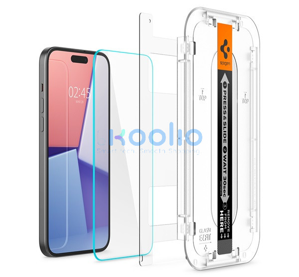 A Spigen "Glas.tR EZ Fit" egy prémium minőségű képernyővédő, amely az egyszerű és pontos telepítésre összpontosít. Az "EZ Fit" telepítő készlettel ellátva, ami segít a felhasználóknak a képernyővédő gyors és buborékmentes felhelyezésében, minimális erőfeszítéssel. Ez az eszköz különösen hasznos azok számára, akik nehézségeket tapasztalnak a képernyővédők precíz felhelyezésében.