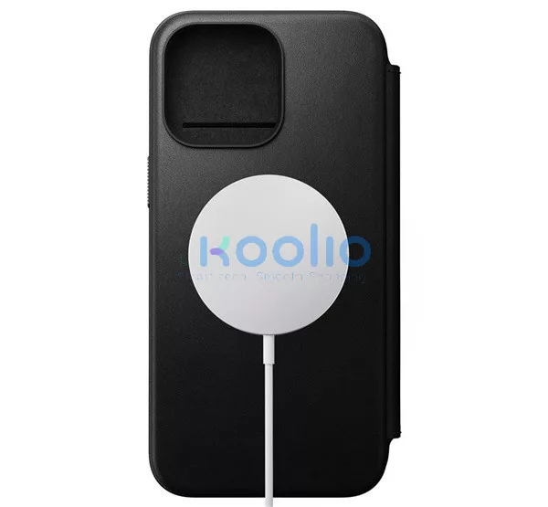 Nomad Modern Leather Folio iPhone 15 Pro Max flip tok, fekete