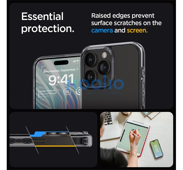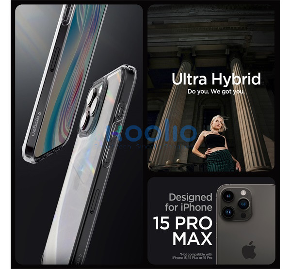 Spigen Ultra Hybrid Apple iPhone 15 Pro Max tok, Space Crystal, átlátszó-szürke, fekete-átlátszó